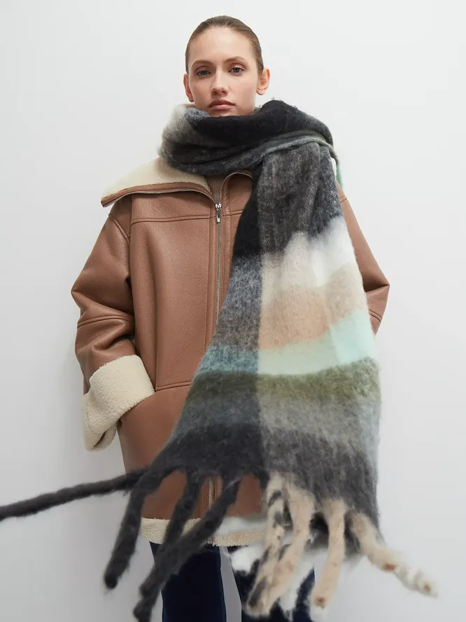 При выборе шарфа первое, на что стоит обратить внимание, это состав. Следи за тем, чтобы твой аксессуар был выполнен преимущественно из натуральных волокон, в идеальной ситуации, из шерсти или кашемира. Смесовый материал тоже подойдет. Против аксессуаров из полиэстера ничего против не имеем, для умеренных холодов они очень даже годятся. Посто ухаживать за такими шарфами придется внимательнее: материал быстро теряет внешний вид, если о нем не заботиться.