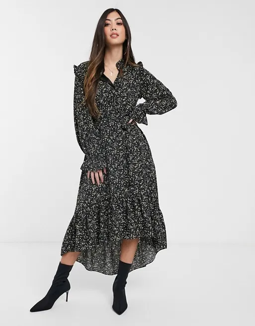 Оборки и цветочный принт — одно из самых модных сочетаний сезона. Такое платье ты сможешь носить куда и с чем угодно — всё зависит только от твоего настроения. Хочешь романтичный образ? Надевай яркие сапоги или ботфорты, а сверху накидывай пальто с поясом. А если душа просит бунтарства, замени сапоги грубыми ботинками или казаками, а пальто — кожаной косухой или дубленкой.