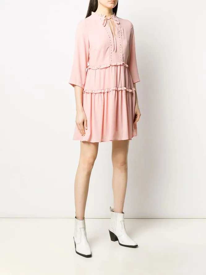 Розовое платье-макси с разрезом и открытой спиной можно надеть и на свидание, и на день рождения к подруге, и даже на весеннюю вечеринку. Такую модель прекрасно дополнят босоножки с тонкими ремешками или яркие ботильоны kitten heels.