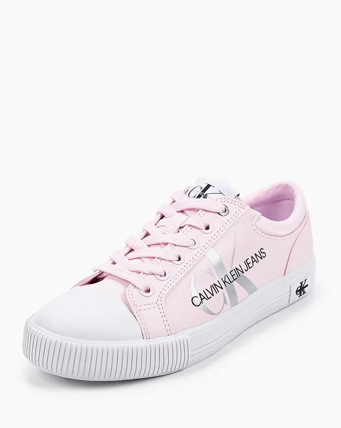 Нежно-розовые кеды с лого отлично сочетаются и с легкими сарафанами, и с пляжными комплектами, и с льняными брючными костюмами.