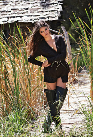 ![]() | «Ничего не могу с собой поделать: сразу представляю, как сниму с нее кардиган, чтобы ощутить нежные руки. А потом и ботфорты...» Кардиган, шорты и ботфорты, Prada; колье, Gucci |