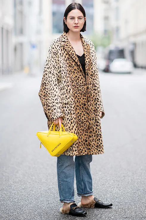Напоследок мы приберегли для вас самый экстравагантный вариант – пальто с окраской дикой кошки. Для него не придумать лучшего окружения, чем лаконичная одежда: джинсы, толстовка, водолазка. Но если броской расцветки вам покажется мало, добавьте яркие аксессуары: шарф, шляпу, необычную сумку.