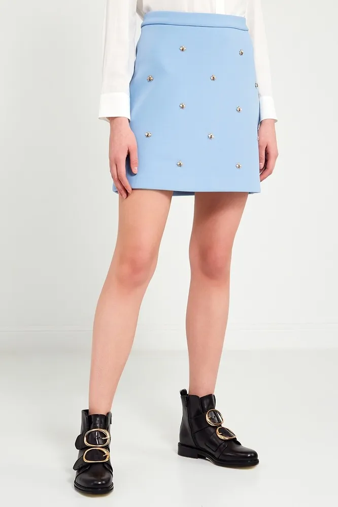 Нежность и металл — если ты любишь контрасты, эта юбка определенно придется тебе по душе, ведь в ней гармонично сочетаются рокерские заклепки и нежный пастельный цвет.