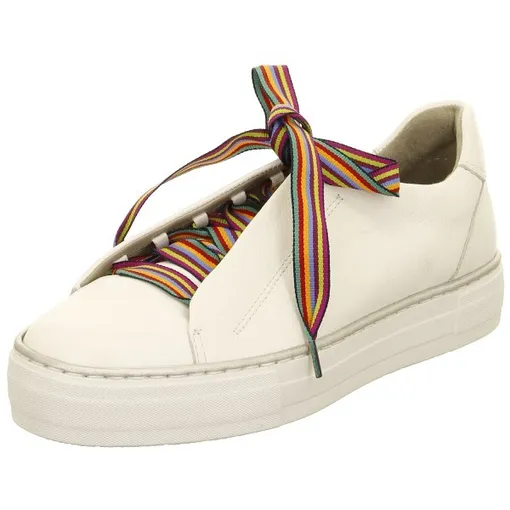 Кожаные кеды молочного цвета с радужными шнурками от ARA привлекут внимание окружающих. Эта модель может легко выступить ярким акцентом в образе. А еще такие кеды будут выигрышно смотреться с одеждой и аксессуарами из кожи.