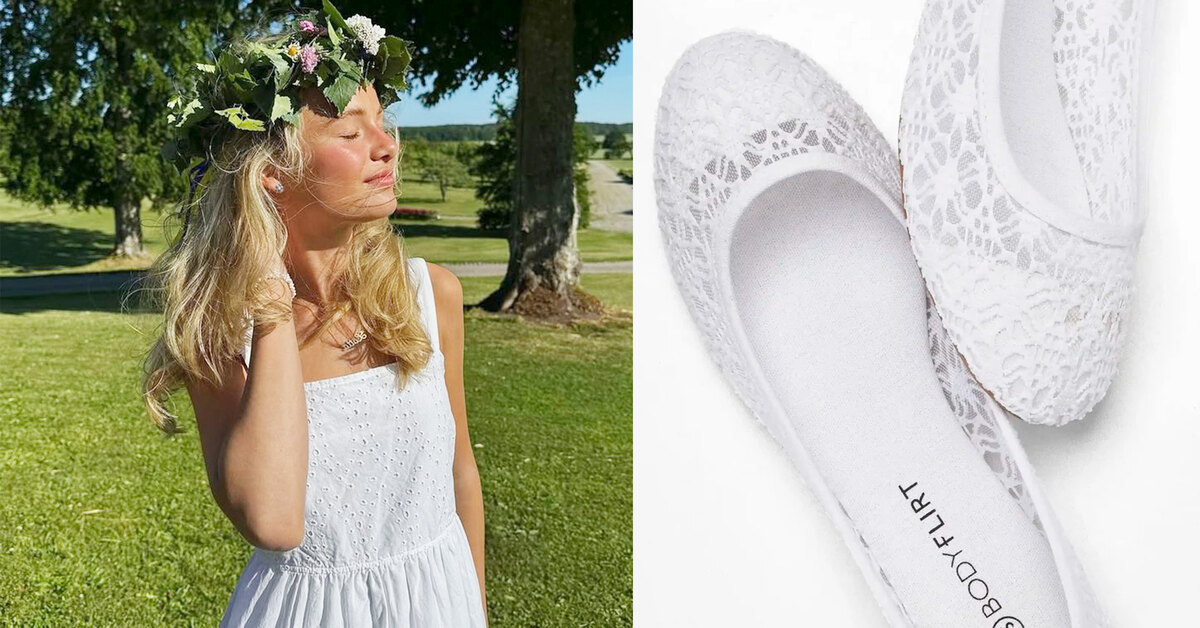 И кружевные балетки — обувь, которая, кажется, идеально вписывается в такую эстетику для летних образов. Ее легко было бы представить и на современных модницах, вроде Эльзы Хоск, и, например, на озорных героинях Астрид Линдгрен из деревни Бюллербю.