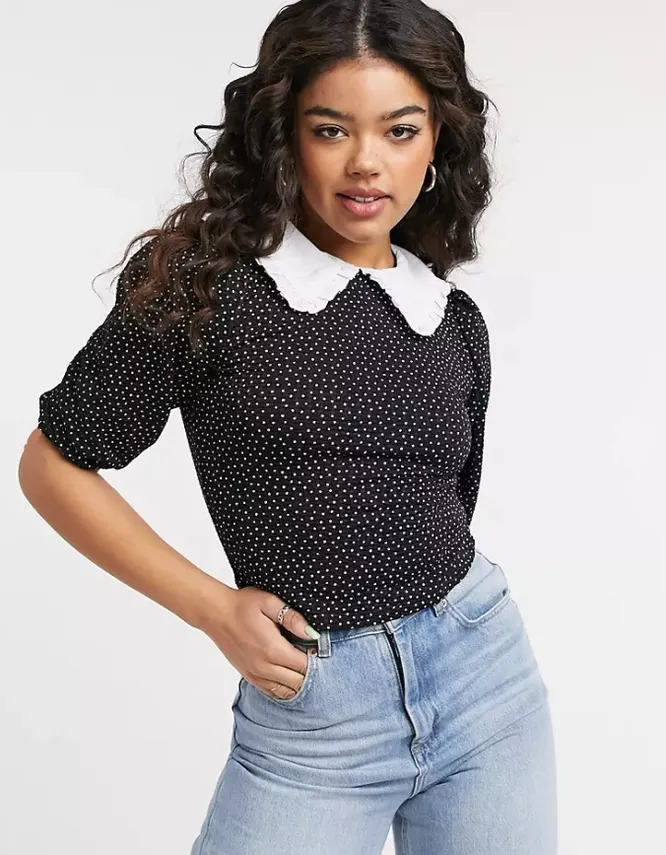 Красиво и элегантно смотрится блузка в мелкий горошек. Дополняй ее шортами с защипами или плиссированной юбкой.