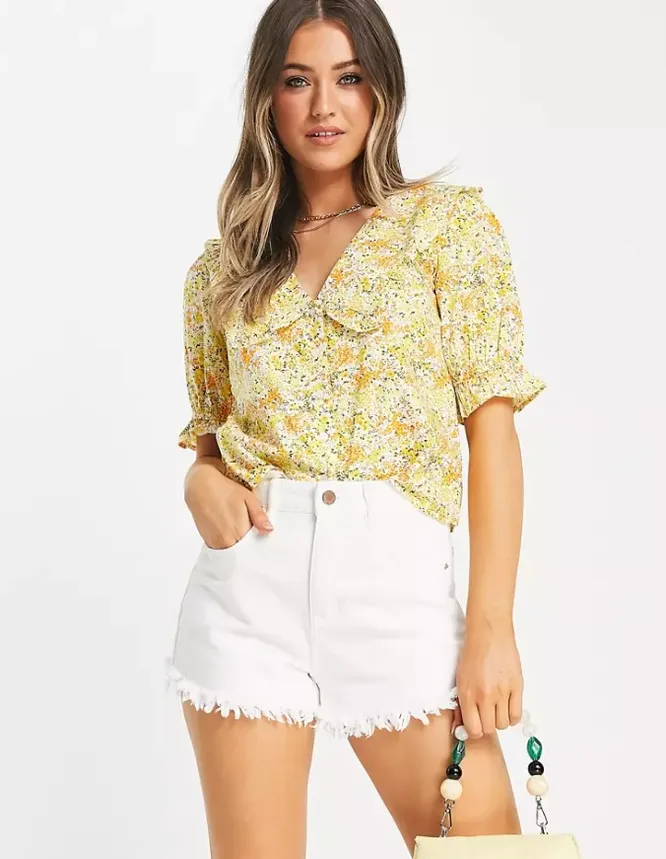 Хит сезона — блузка с мелким цветочным принтом. Можно носить ее в тандеме с яркой мини-юбкой или светлыми джинсовыми шортами.