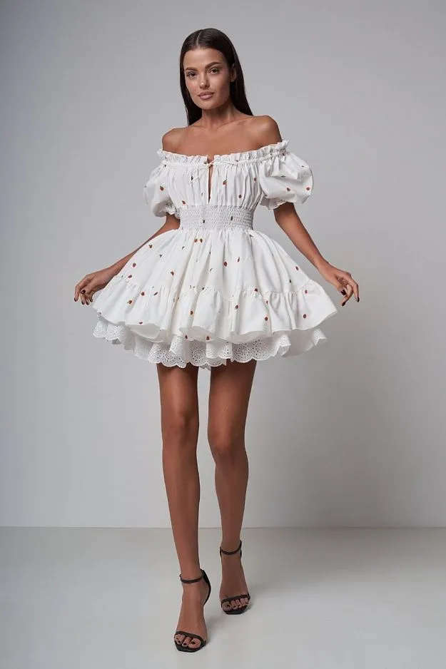 И кстати, не пропустим баллоны! Да, невероятную популярность получили именно юбки-бутоны, но теперь в хиты продаж рвутся и платья. В этом случае, конечно, примеряем варианты в мини: объемное платье + босоножки с завязками — крутейшее комбо на лето!