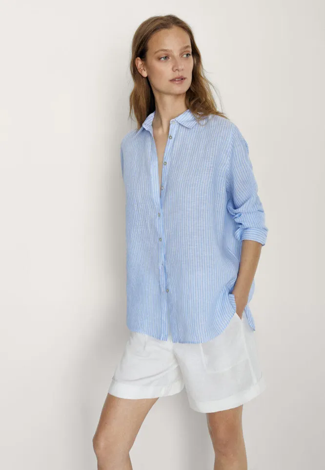 Эта модель подойдет и для повседневных, и для офисных, и для пляжных образов. Рубашка в полоску одинаково хорошо смотрится как с классическими брюками, так и с расслабленными льняными шортами.
