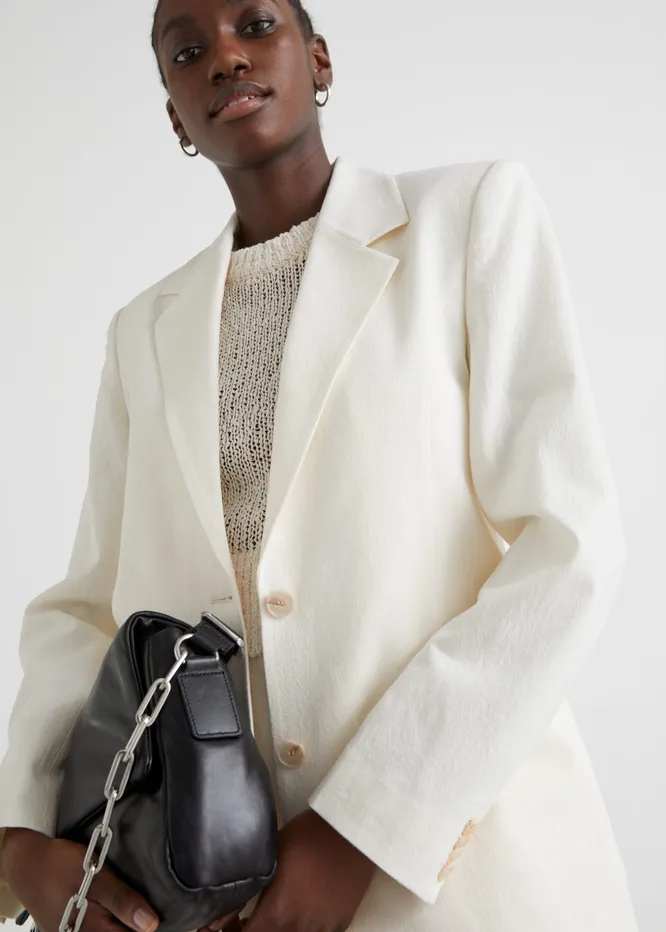 - Когда выбираешь летний женский льняной пиджак без подкладки, обращай внимание на плотность основной ткани. Вещь не должна быть слишком тонкой и просвечивающей, иначе она дешевит и упрощает образ.