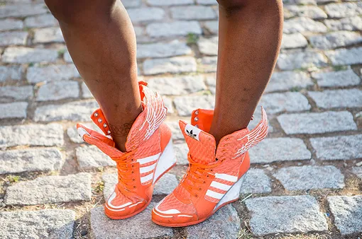 Даже если на минуточку забыть о том, что такие кроссовки вышли из моды сто лет назад, сникерсы на танкетке смотрятся как минимум странно в летнем гардеробе.