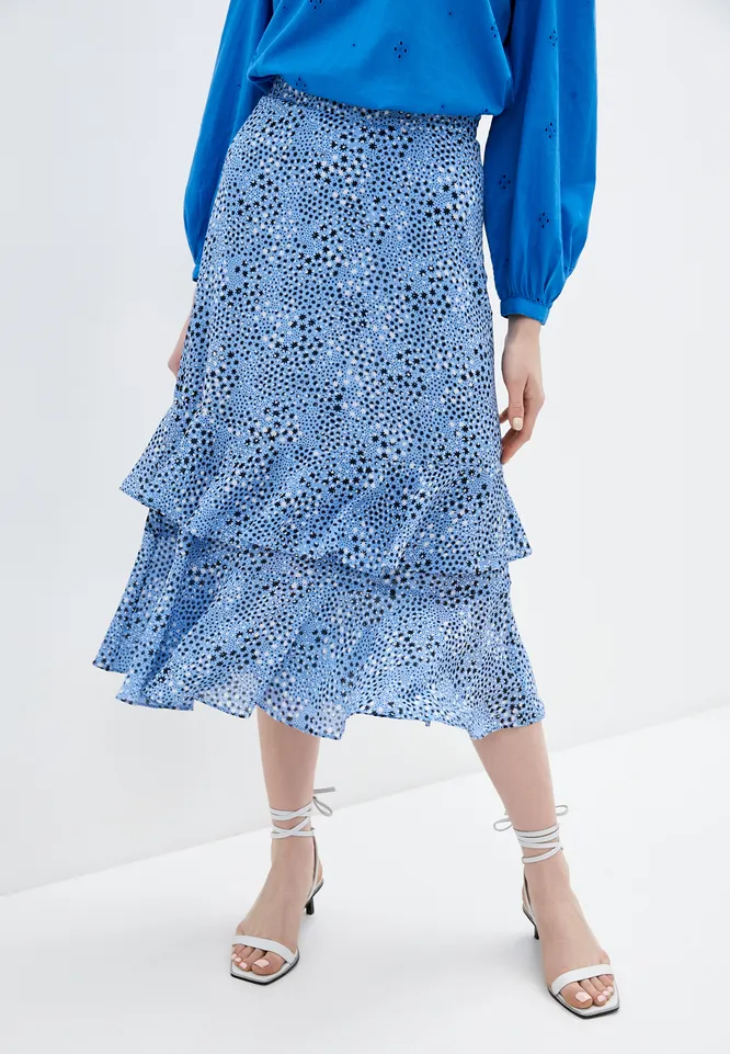 Эта модель добавит твоим аутфитам романтичность, сделает их более фактурными и динамичными. Предлагаем носить ее с блузками и топами с объемными рукавами.