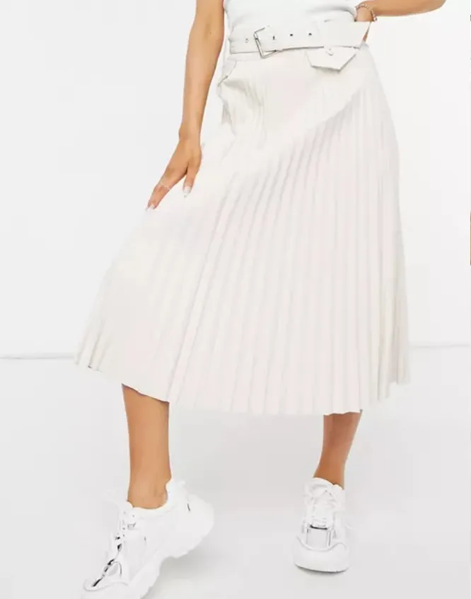 Универсальная модель на любой случай — кремовая плиссированная юбка. В офис носи ее с классической рубашкой и жакетом, на свидание — с шелковой блузкой, на прогулку — со свитшотом и кроссовками.