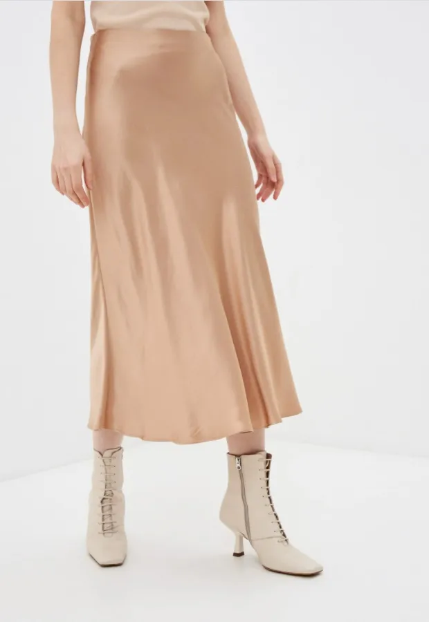 Атласную юбку в бельевом стиле советуем носить с противоположными по стилю и характеру вещами. Это могутт быть кожаная куртка, кардиган крупной вязки, джинсовка, жаккардовый топ.