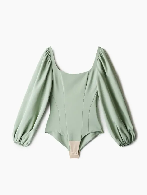 Для вечерних и романтичных луков выбирай боди корсетного стиля с объемными рукавами. Лучшей парой к нему станет юбка А-силуэта, свободные брюки или джинсы на высокой посадке.