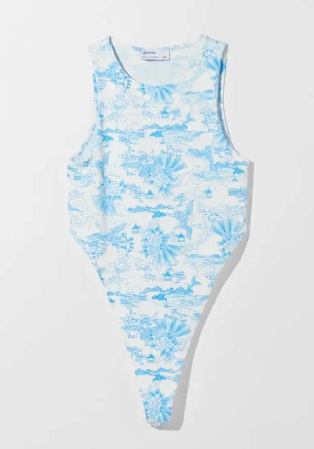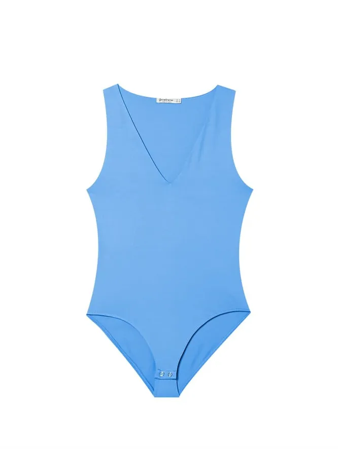Хочешь добавить яркий акцент? Тогда присмотрись к голубому боди. Оно подойдет практически к любым джинсам, брюками и юбкам.