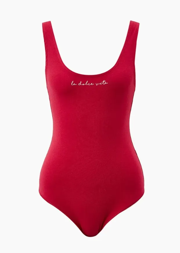 Для образов в спортивном стиле подойдет минималистичное красное боди. Предлагаем носить его с бомберами и джоггерами, трикотажными брюками и оверсайз-куртками.