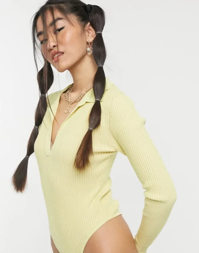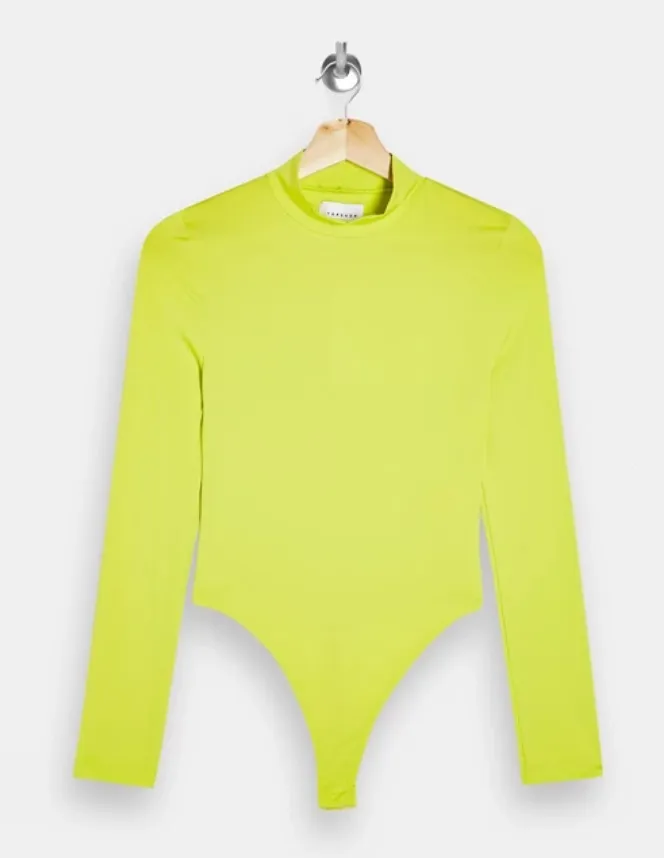 Не стоит бояться и неоновых оттенков, который это весной снова актуальны. Кислотно-желтое боди с воротником-стойкой органично впишется в спортивные и уличные образы.