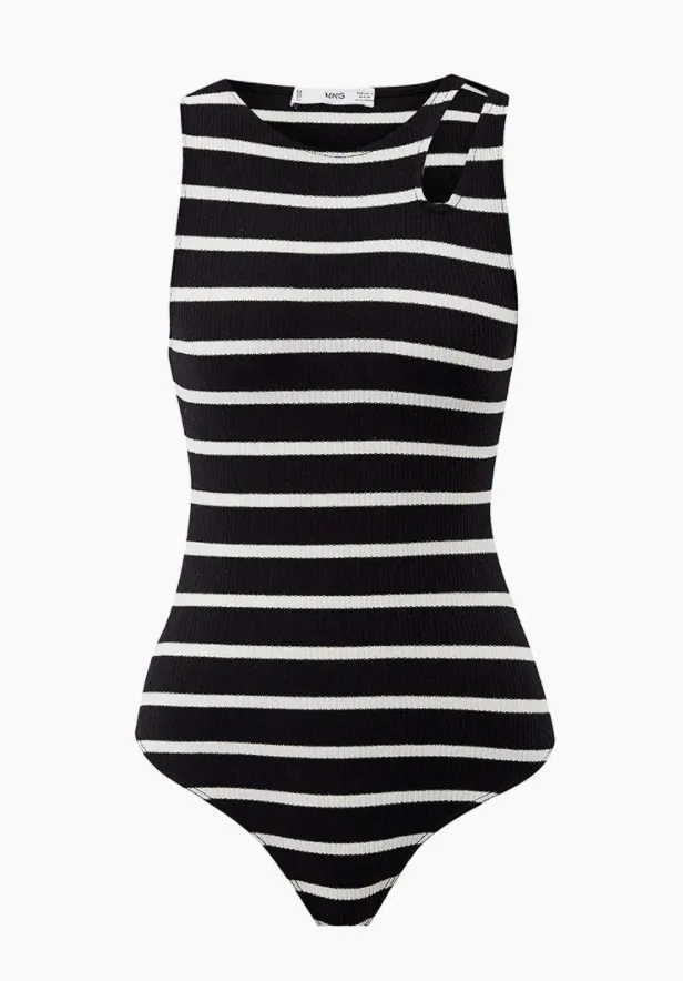 Идеальный вариант под любой аутфит — черное трикотажное боди. Можно носить его с белыми широкими брюками и лаконичным блейзером или сочетать с джинсами-трубами и легкой курткой рубашечного кроя.