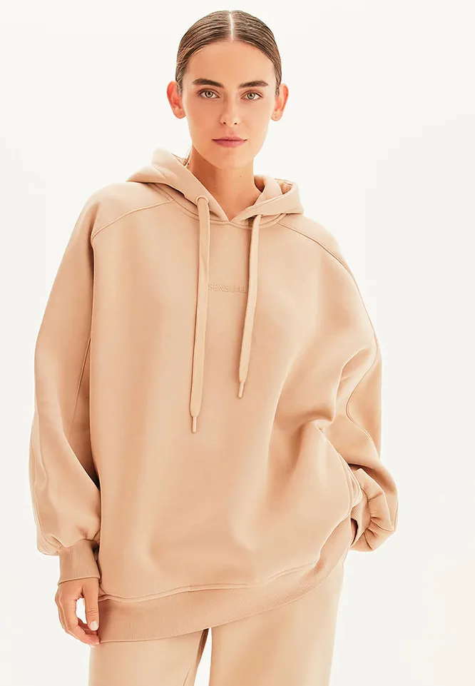 Если любишь свободные силуэты, выбирай женское оверсайз худи. Совет: чтобы оно не смотрелось слишком мешковато, отдавай предпочтение моделям в светлых тонах. Идеальный вариант – бежевое худи. Модель одинаково хорошо смотрится как с узкими, так и с широкими брюками и джинсами. Также оверсайз-худи можно носить с юбками миди или макси и надевать поверх летящих платьев.