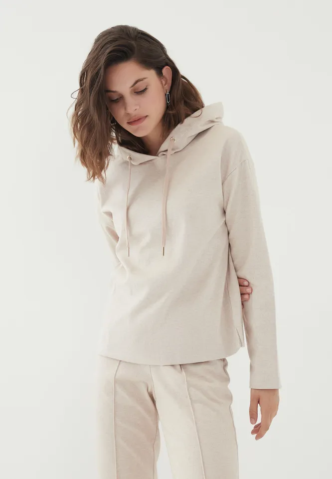 - На теплое время года подойдет базовое худи из 100% хлопка, на осень и зиму – модели с флисовым внутренним слоем или начесом.
