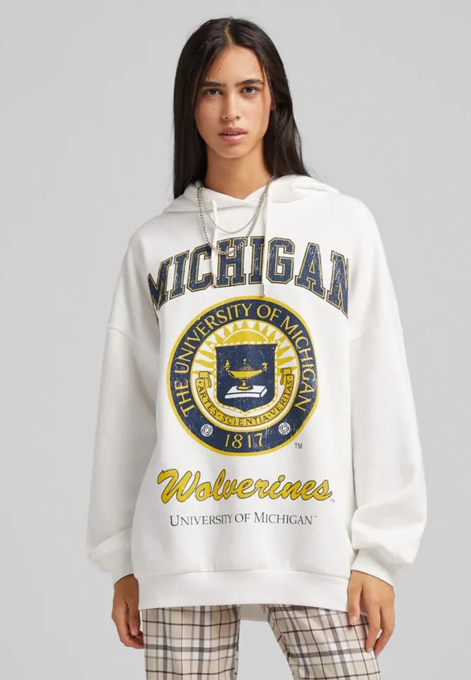 По-прежнему популярны толстовки, худи и свитшоты с эмблемами известных американских университетов. Если хочешь почувствовать себя частью студенческого сообщества – этот вариант для тебя. Худи хорошо смотрится и с базовыми джинсами, и с кожаными брюками, и даже с юбками. Поверх накинь объемную кожаную или джинсовую куртку.