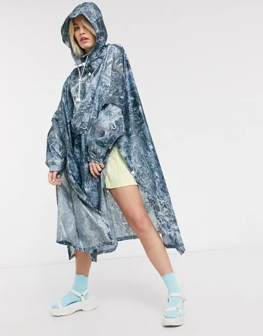 Дождевик свободного кроя внесет разнообразие в твой базовый гардероб. И все благодаря яркому мраморному принту.