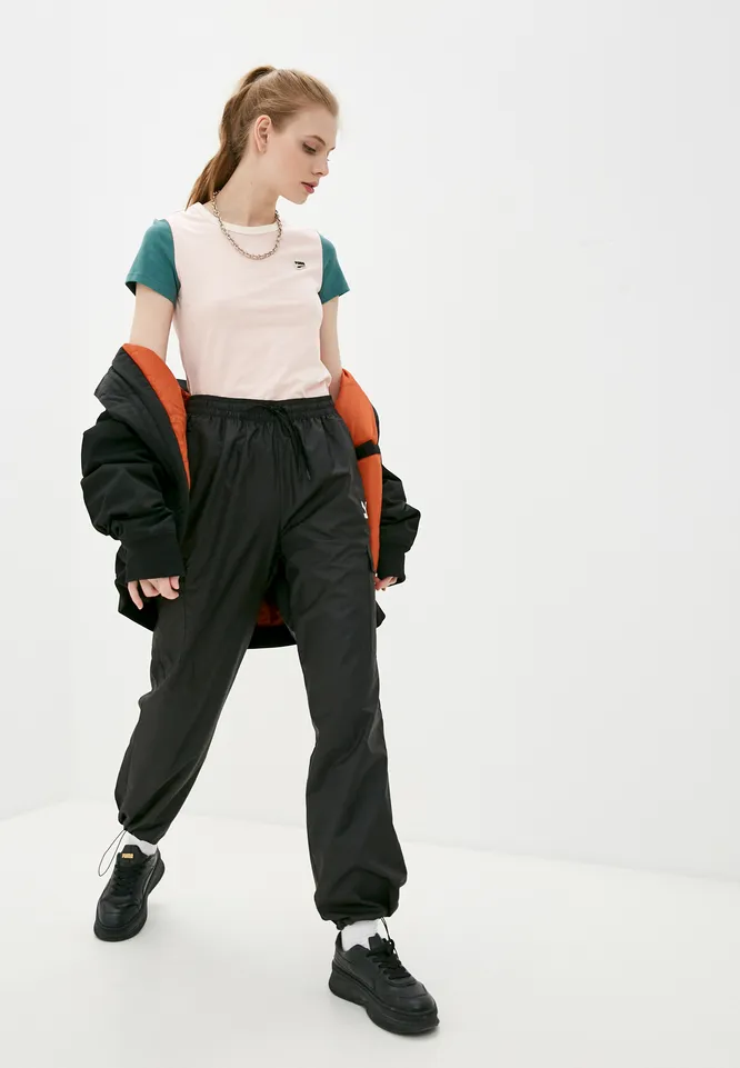 Самый очевидный ответ на вопрос, с чем носить женские джоггеры, – кроссовки. Лучше выбирать модели на толстой подошве, чтобы низ образа был сбалансированным. Это идеальный тандем для будней. Дополни ансамбль теплым свитером, объемной косухой или оверсайз-пальто и трендовой сумкой через плечо.