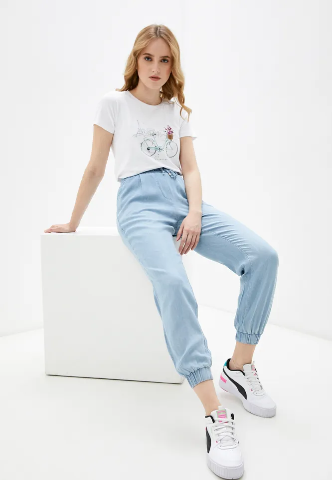 Фактурные джинсовые джоггеры носи с пестрыми блузами, лонгсливами в стиле поло, свитшотами, свитерами крупной вязки. Они органично впишутся как в летние, так и в осенне-зимние образы.