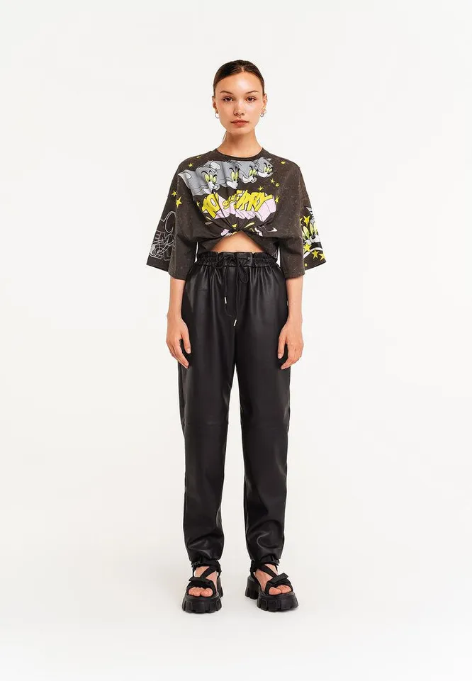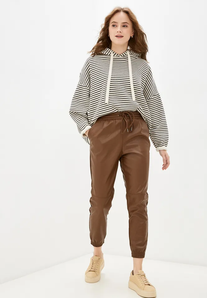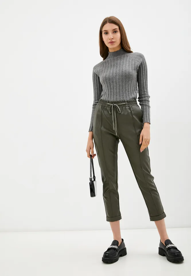 Вещи из кожи по-прежнему актуальны. Если ты еще не освоила этот тренд, то сейчас самое время! Присмотрись к модным женским джоггерам из кожи. Ты легко сможешь вписать их как в повседневные и деловые, так и в вечерние луки. Например, в офисе они уместны с классической рубашкой или женственной блузкой и строгим пиджаком. В повседневной жизни – с остроносыми ботильонами на каблуке и кардиганом крупной вязки. Если собираешься на вечеринку, создай контрастный образ: дополни кожаные джоггеры воздушной блузкой из полупрозрачной ткани, изящными лодочками и бархатной сумочкой на цепочке.
