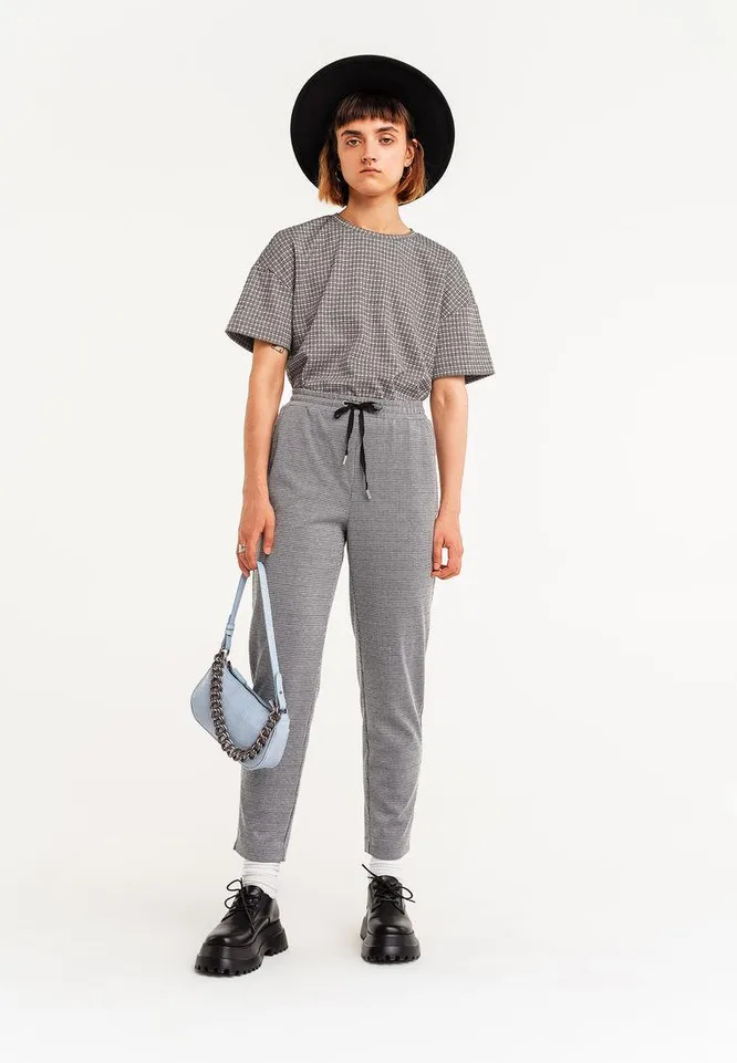 Круто смотрятся джоггеры с принтами. Это может быть мелкая клетка или тонкая вертикальная полоска, тай-дай, абстрактные узоры. Такие модели отлично впишутся в образы в уличном стиле. Например, штаны с принтом тай-дай можно надеть с базовой белой футболкой, джинсовой курткой в винтажном стиле и ретрокроссовками. Более сдержанные джоггеры в клетку или полоску органично впишутся в образы на каждый день и в офис.