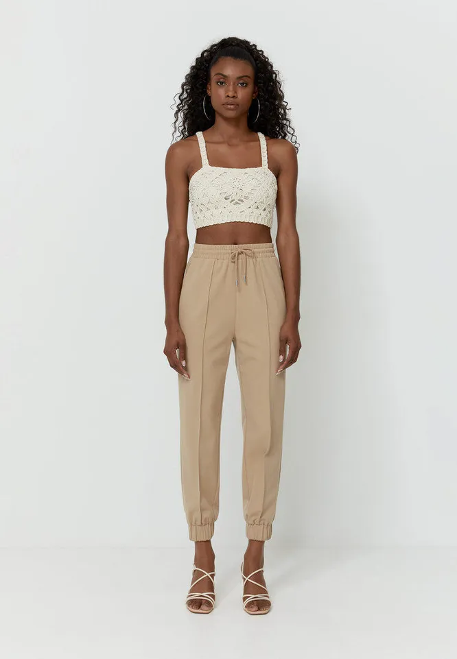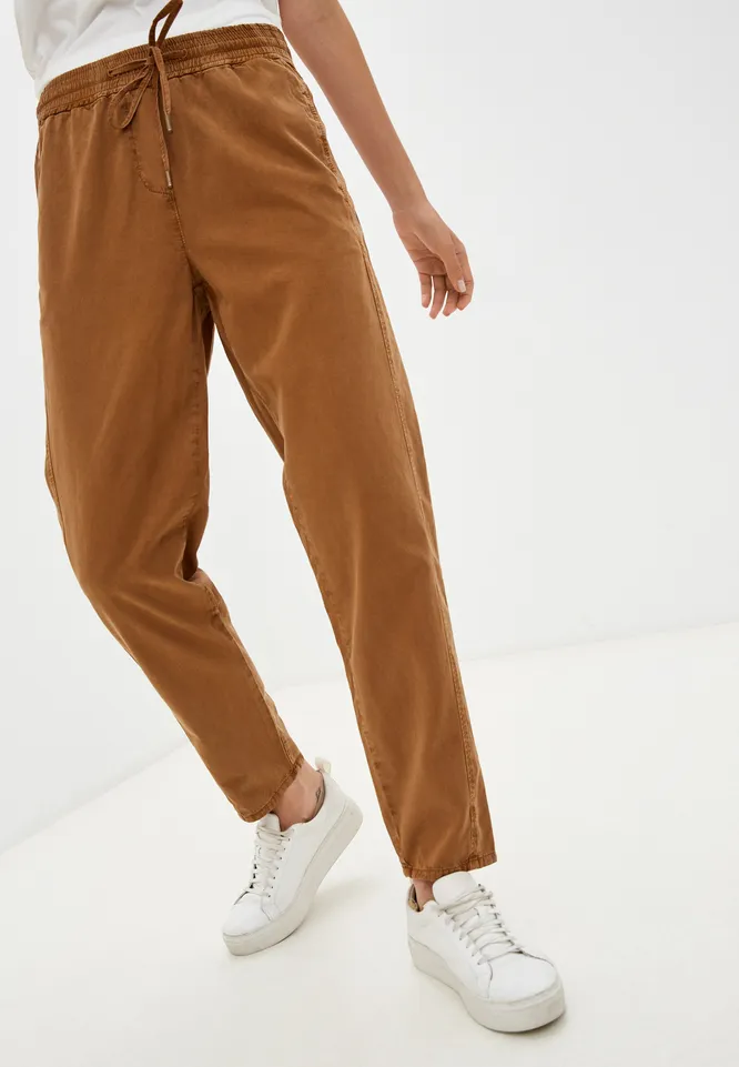 Женские брюки-джоггеры без резинок на брючинах из костюмной ткани станут отличной заменой классическим брюками. Смело носи их в офис с женственными блузками и лодочками, строгими рубашками и лакированными лоферами, базовыми водолазками и элегантными удлиненными блейзерами. Отдавай предпочтение благородным цветам, которые органично вписываются в деловой дресс-код и хорошо гармонируют с базовыми оттенками.