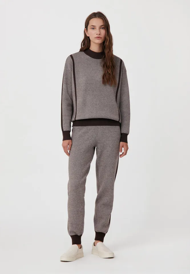 Универсальный вариант на каждый день – базовые джоггеры. Это могут быть модели из хлопка, шерсти, кашемира, синтетического трикотажного полотна. Они стильно смотрятся в тандеме с объемными худи и свитшотами, а также с оверсайз-свитером. Так можно отправиться на шопинг, прогулку или поехать за город. Сделать образ более трендовым и адаптировать его под городскую среду помогут аксессуары и акцентная обувь. Известные модницы, к примеру, дополняют трикотажные комплекты высокими грубыми ботинками или массивными кроссовками на толстой подошве, лаконичными кожаными сумками через плечо и солнечными очками с заостренными уголками.