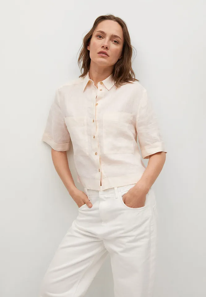 Настоящей находкой для твоего летнего гардероба станет льняная рубашка с коротким рукавом. Она органично смотрится и с широкими брюками в пол, и с джинсовыми шортами, и с летящими юбками.