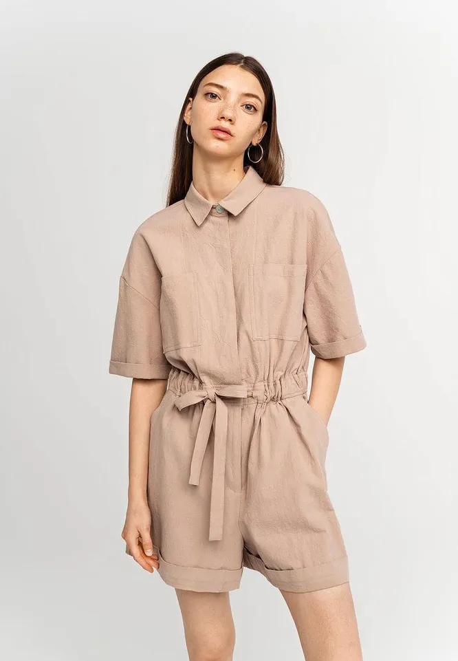 Более простой и повседневный вариант — короткий комбинезон расслабленного кроя.