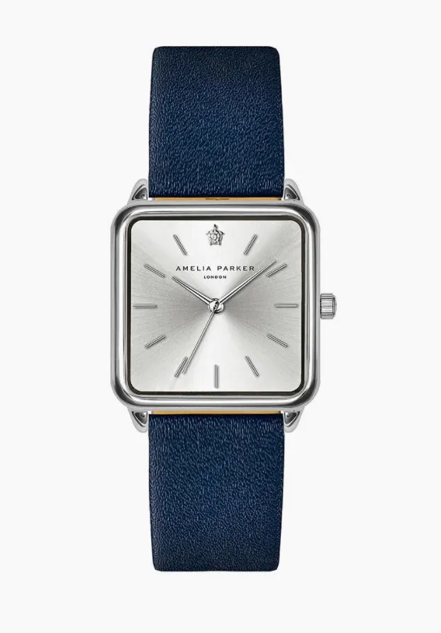 Модель с квадратным циферблатом станет интересным акцентом любого образа. Сочетание холодного синего и серебристого подчеркнет твою элегантность.