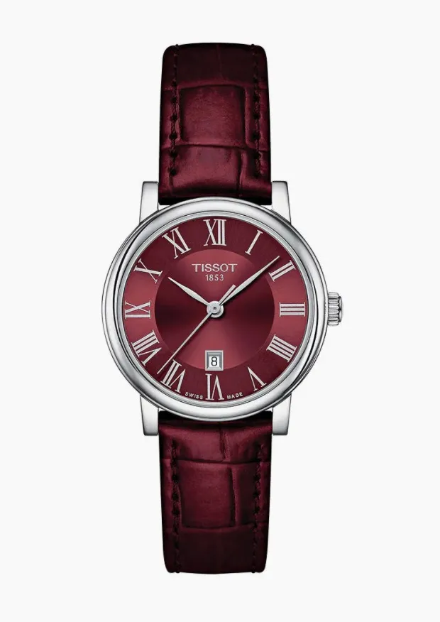 Фактурные часы благородного бордового цвета гармонично дополнят строгие аутфиты для офиса и деловых встреч. Их также можно носить с элегантными платьями и блузками.