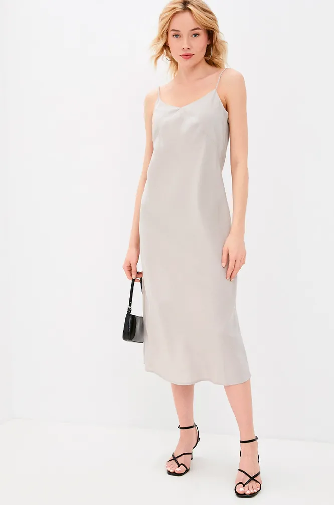 Платье-комбинация — вещь универсальная, которой можно найти применение в любом образе. В офис носи его с массивным пиджаком и лаконичной обувью. Оно станет отличной основой и поможет визуально смягчить строгое сочетание.