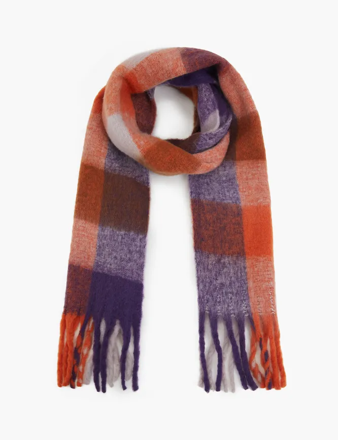 В список трендовых шарфов 2024 года входит вариант в колорблоке. Носи обвноку с однотонной одеждой базовых оттенков, если боишься, что наряд получится слишком пестрым – безопасность здесь не лишняя. А для бесстрашных фэшэниста правил нет — с пестрым шарфом открыт целый простор для экспериментов.