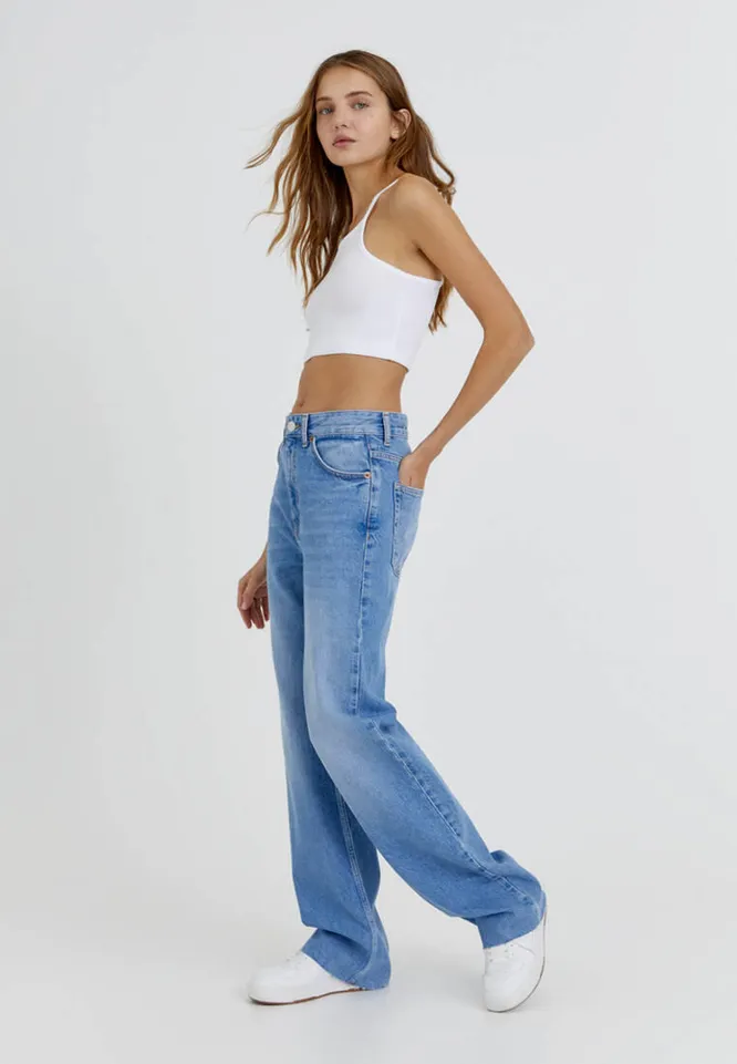 Тренды модных женских джинсов весны-лета – 2022 говорят нам, что в новом сезоне будут актуальны модели стандартной длины расслабленного кроя. Это могут быть обычные прямые джинсы, трубы, mom’s, бойфренды, клеш. Что касается посадки, то в тренде как средняя и высокая, так и заниженная. В списке трендов весны-2022 модные женские джинсы чистого классического цвета: черные, молочные, синие, голубые. Отдавай предпочтение моделям без потертостей и декоративных деталей.