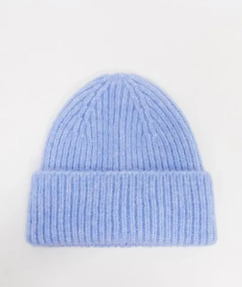Эта красивая голубая шапка бини из трикотажа станет отличным дополнением как к темным, так и к светлым пуховикам. В пару к ней подбери лаконичный шерстяной шарф пастельного оттенка и акцентные перчатки.