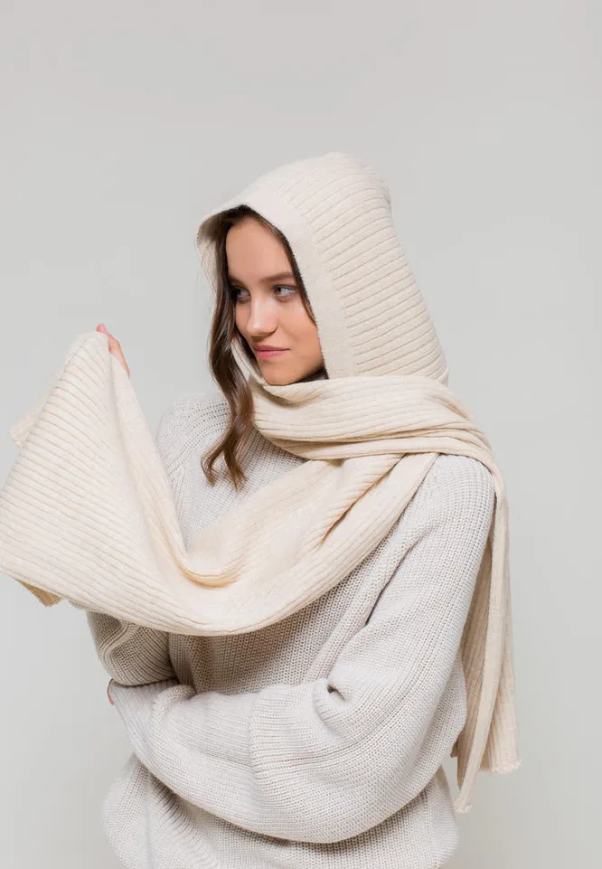Если зимой ты носишь пальто, то советуем также обратить внимание на эту модель капора с шарфом. Это не только стильный, но и очень удобный и практичный головной убор.