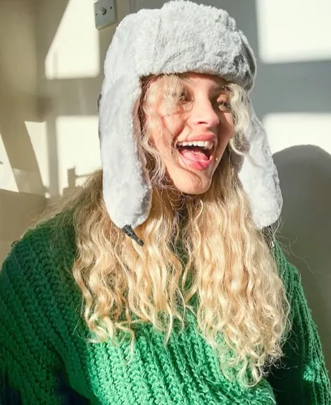 Отсутствие косметики – вязаный головной убор с помпоном.