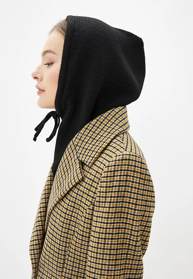 Для тех, кто сомневается, какую шапку носить с пальто, появилась еще одна интересная модель. Это капор. Как выглядит такой головной убор? Это – вязаная шапка, напоминающая трикотажный капюшон. Она добавит луку женственность и элегантность. Так что не раздумывай слишком долго, с какой шапкой носить пальто в 2021 году, в этом сезоне ее носят все модницы. Капор можно надевать как с классическими двубортными пальто, так и с моделями оверсайз.