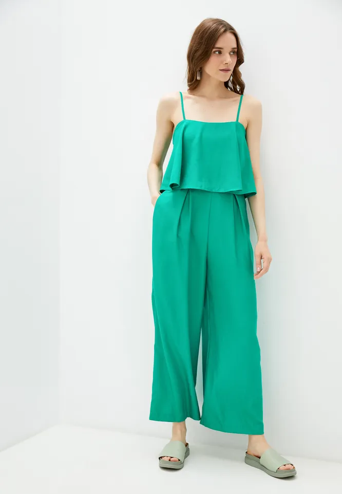Для офисных аутфитов выбирай комбинезон классического покроя со стрелками. Модель выполнена из хлопка и лиоцелла — легкого, приятного к телу и воздухопроницаемого материала.