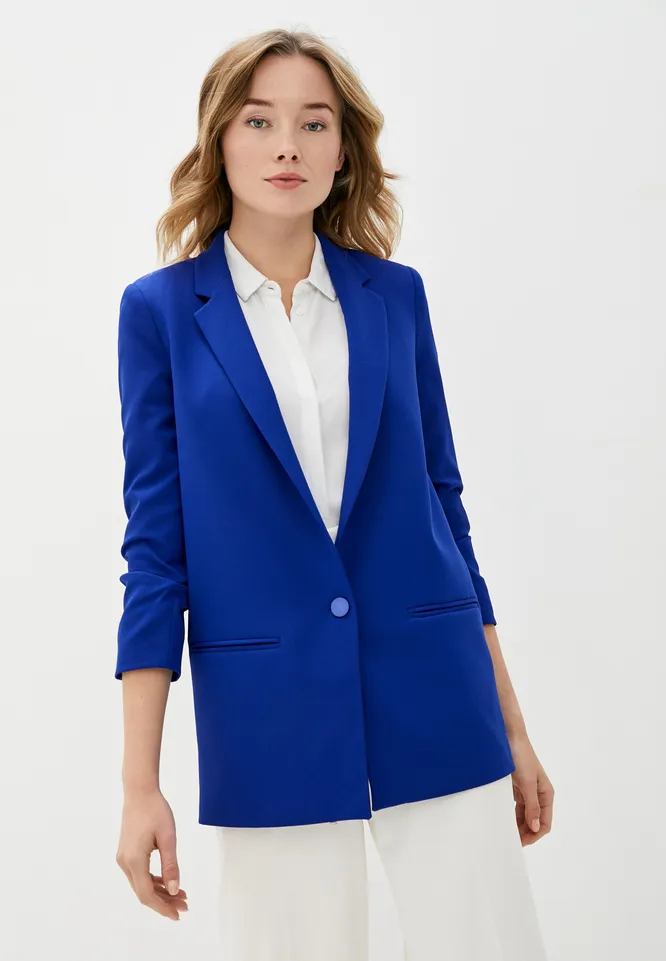 В этот насыщенный синий цвет просто невозможно не влюбиться! Пиджак станет отличной основой для ультрамодных образов для офиса и повседневной жизни.