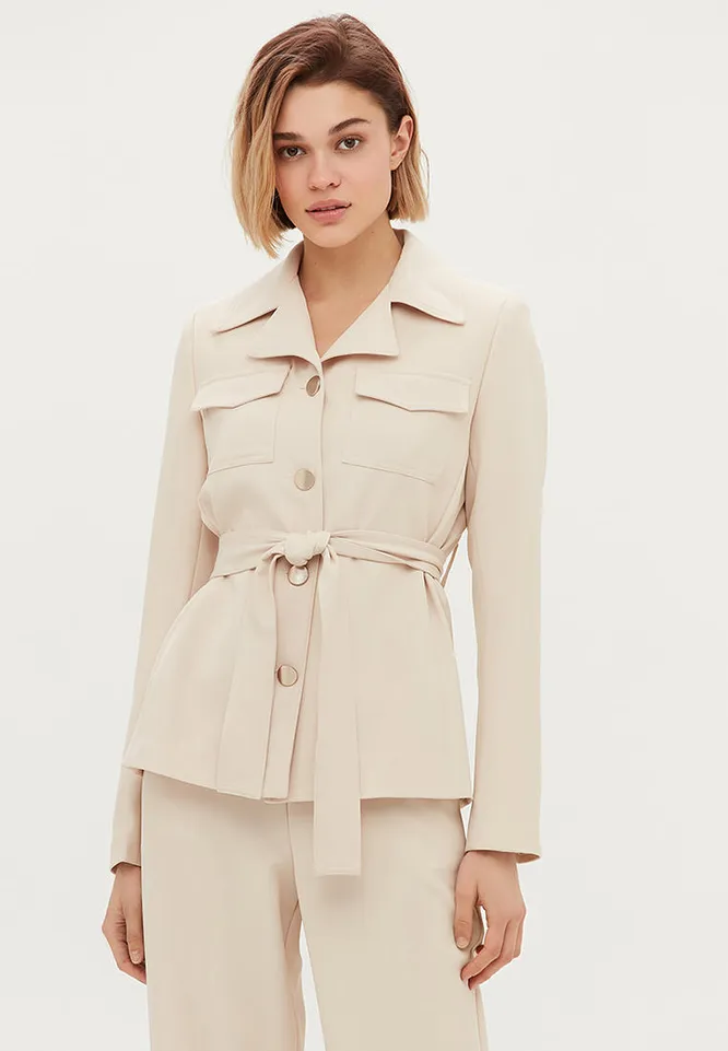 Будущие хиты сезона — пиджаки и куртки в стиле рабочей униформы. Ищи модели нейтрального цвета - их легче обыграть.