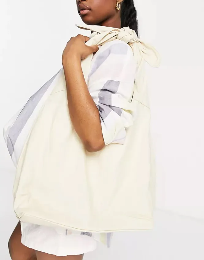 Мягкая сумка с узлом отлично дополнит образ с шортами-бермудами, оверсайз-рубашкой и кроп-топом.
