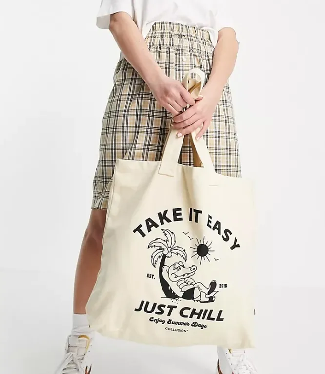 Если ищешь что-то простое и незамысловатое, обрати внимание на сумку-шопер с забавным рисунком.