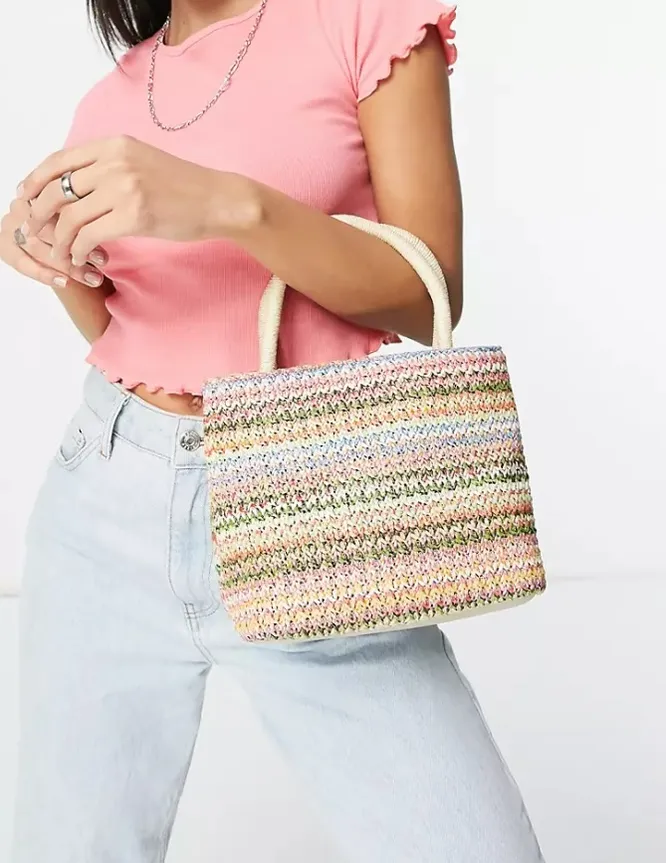 Плетеная сумка в стиле колор-блок легко впишется как в монохромные луки, так и в более сложные образы.
